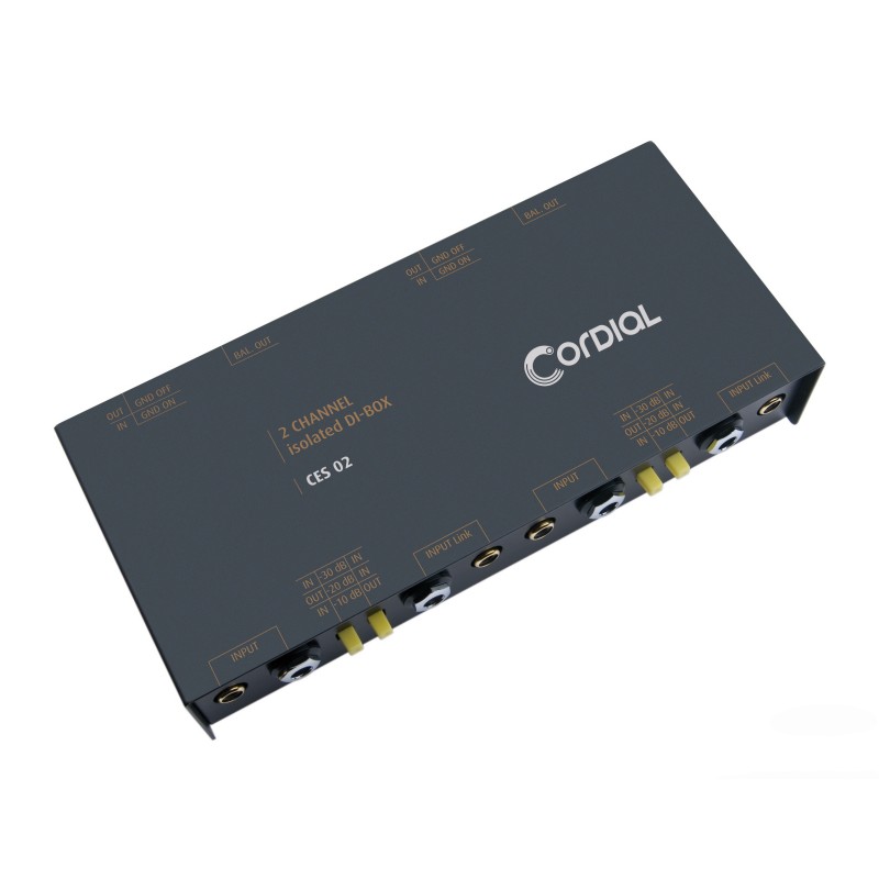 In line with the latest trend, i.e. keyboards, samplers and effects units with stereo outputs, CORDIAL/s passive DI-box CES 02 allows you to easily connect line level outputs to balanced mixing desk inputs with microphone level sensitivity. Another convenient feature is also the option to loop signals through – not only via the 6.3 mm plug but also via RCA(Cinch) format, which is often found in semi professional CD/Mini Disk/Cassette/DAT players. So the CES 02 features a completely ground separated inner design and that means that two mono signals can be transmitted without any cross talk. The CES 02 doesn’t require any batteries or phantom feed. The technical specifications of the transformer meet studio standards.