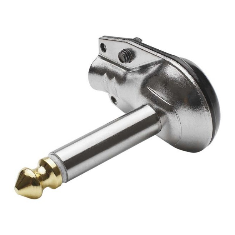 This super-flat 6.3 mm jack plug is designed in the solder version and features a solid pin with gold tip. It comes in a black metal housing and is angled at 90°, with moisture-repellent insulation. The plug is designed for cables with a diameter of 4.0 to 6.4 mm and has a clamping strain relief. When plugged in, it has a minimum installation height of just 11.5 mm, making it particularly suitable for floor effect constructions.