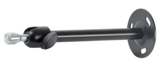 Γενική βάση τοίχου με βίδα στερέωσης 3/8'' ή 5/8'' για μικρόφωνα και κεραίες. Χάρη στο ball joint, η βάση μπορεί να περιστραφεί κατά 360° και να πάρει κλίση 90°. Η πλάκα στήριξης έχει διάμετρο 70 mm και η απόσταση τοίχου είναι 205 mm.