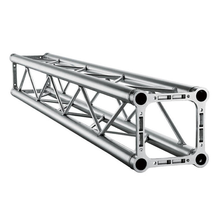 It is the lightest professional structure, yet it is able to guarantee a reasonable loading capacity and span. The internal 14 mm diameter diagonal components are flush which decreases the aesthetic impact of this truss, which may therefore also be used in small areas.