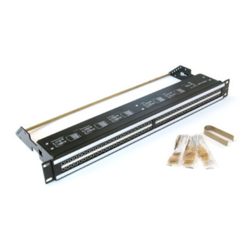 2 x 48 TT (Bantam) jacks, half normalled bottom row, 12 x 25 pole female D-Sub, grounding: groups of 12 channels
