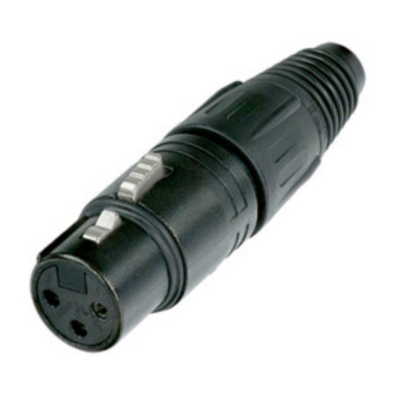 The "industry standard" XLR cable connector, easy to assemble with only 4 parts and no screws. Compact design with sturdy diecast shell, fibreglass reinforced hard plastic insert and chuck type strain relief for secure clamping of all cables.