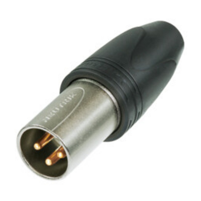 Heavy duty male 3 pole XLR cable connector for outdoor use.