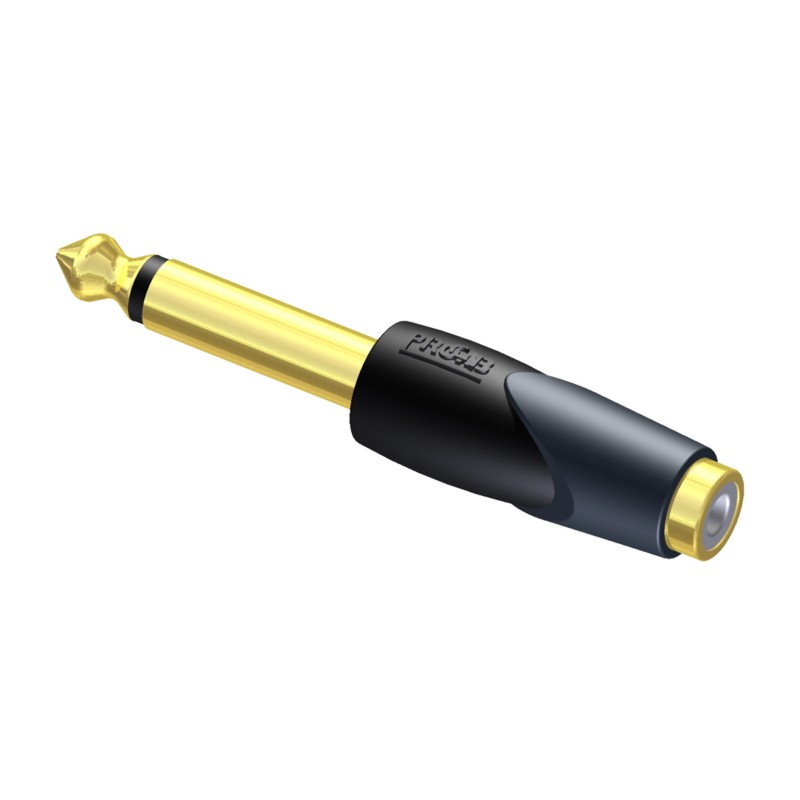 The CLP104 is a RCA female to male 6.3mm mono jack adaptor for connecting cables that lack the right connection for your audio device. The firm molding over the connector ensures an isolation from the ground and gives a solid feel.