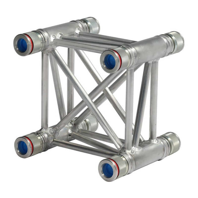Verto H30 Series truss is constructed of main chords (48 x 3 mm) and diagonal members (16 x 2 mm). Equipped with the Verto coupling system, the Verto H30 truss is fast and easy to assemble. The Verto H30 truss can be found in rental fleets all over the globe, where its optimum strength and flexible application possibilities makes it well loved and much used. H30 truss is available in a square profile and a range accessories.