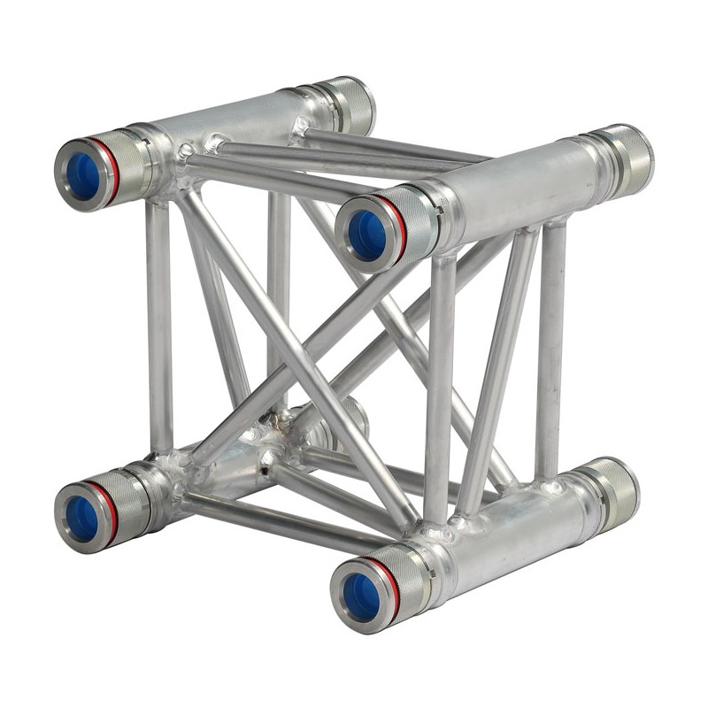 Verto H30 Series truss is constructed of main chords (48 x 3 mm) and diagonal members (16 x 2 mm). Equipped with the Verto coupling system, the Verto H30 truss is fast and easy to assemble. The Verto H30 truss can be found in rental fleets all over the globe, where its optimum strength and flexible application possibilities makes it well loved and much used. H30 truss is available in a square profile and a range accessories.