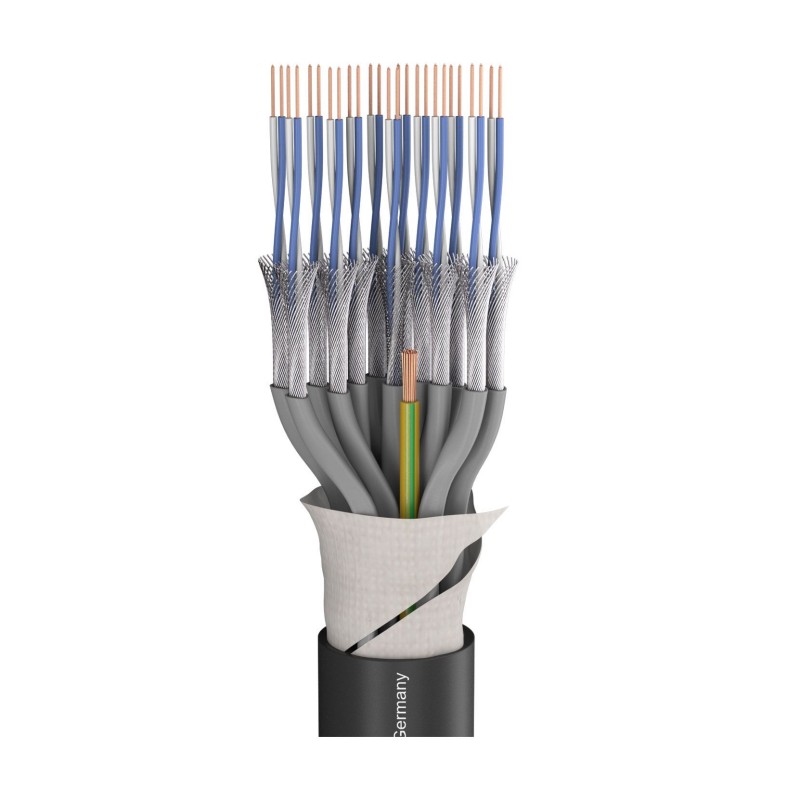 The SC-Quantum QMC HIGHFLEX is absolutely torsionfree, i.e. it can be wound in a figure of “8“ easily and will not twist when winding or unwinding it. Not only the S-PVC-jacket, which is cold-resistant down to –30 °C and notch-resistant, feels soft – due to the superfine 0.07 mm (!) individual copper litz and the PEinsulated wire insulation, even the interior is wonderfully supple and unbreakable. From the 8-pair version upward we have included an extra yellow/green protective earth wire to provide for added stability and safety (PE = protective earth).