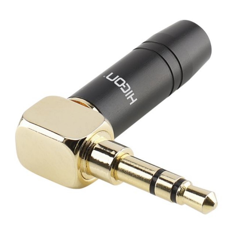 This 3.5 mm jack plug is 3-pin, stereo and has a genuine gold-plated pin and a black aluminium housing. The plug is angled at 90° and equipped with a clamping strain relief, suitable for cables with a maximum diameter of 5.8 mm.