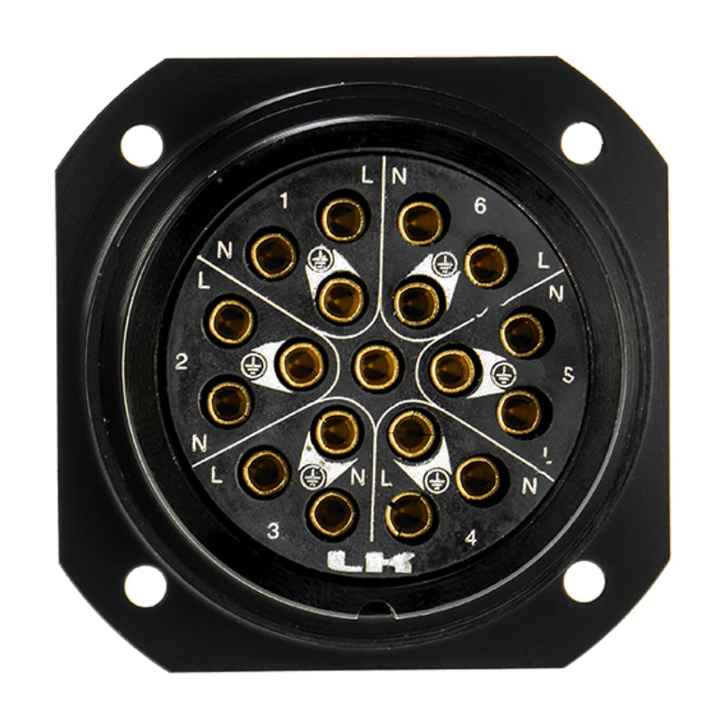 The LK 19-Pin 'Socapex' Connectors (LKS) range is designed for professional lighting and power distribution applications, offering a significant breakthrough in reliability and safety while maintaining full compatibility with the Socapex SL 419 series. These connectors, based on the LK Series MIL-SPEC designs, are extremely robust, IP68 rated, and equipped with impact-resistant rubber locking rings.