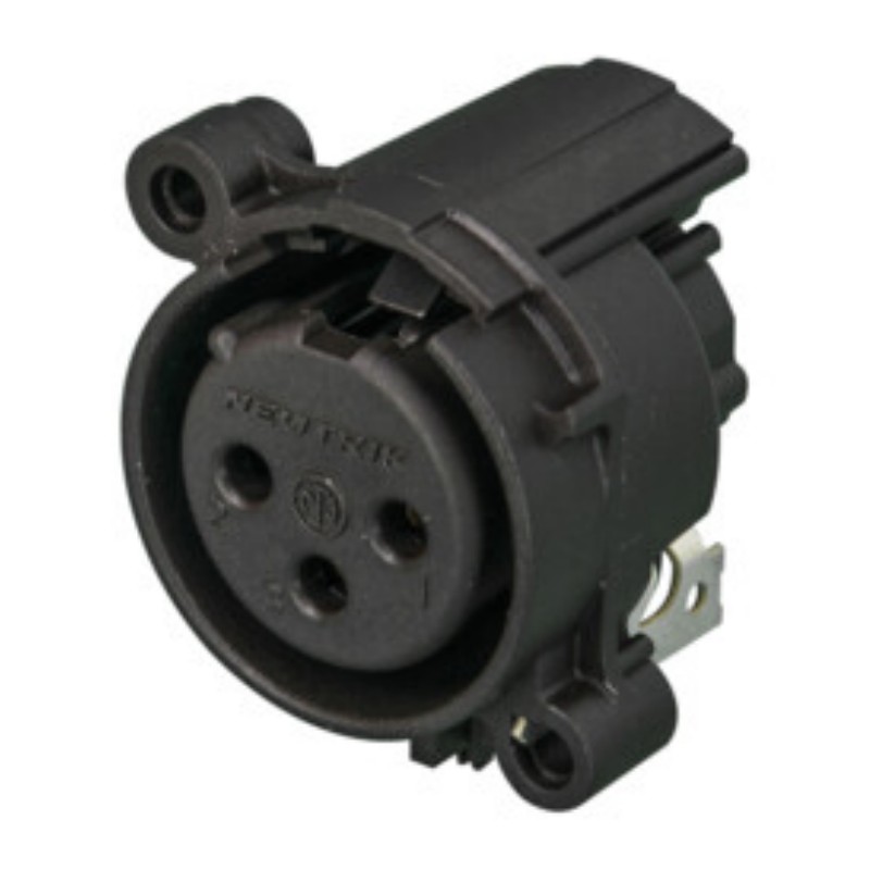 The `State of the Art` receptacle. Round plastic body XLR PCB mount panel connector. These have the smallest size and highest packing density (23mm between centres). New designed tulip type contacts with hard gold plating and polished contact areas. UL recognized component.