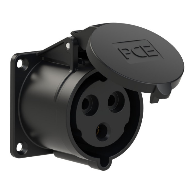 CEE-flanged socket straight (70x70mm) 32A 3p 6h IP44 black