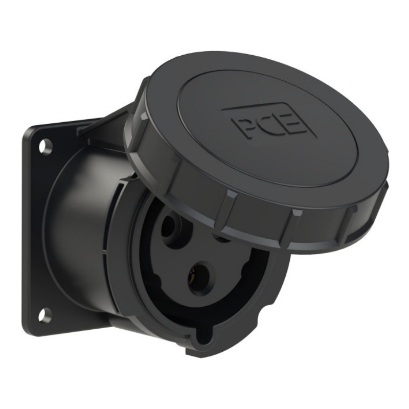 CEE-flanged socket straight (75x75mm) 32A 3p 6h IP67 black