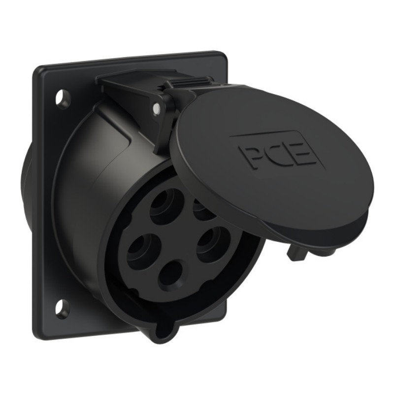 CEE-flanged socket sloping (80x97mm) 32A 5p 6h IP44/IP54 black