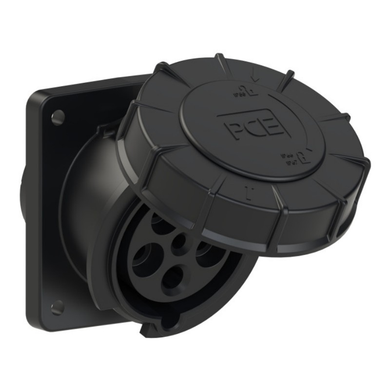 CEE-flanged socket sloping (100x112) 63A 5p 6h IP67 POWER TWIST black
