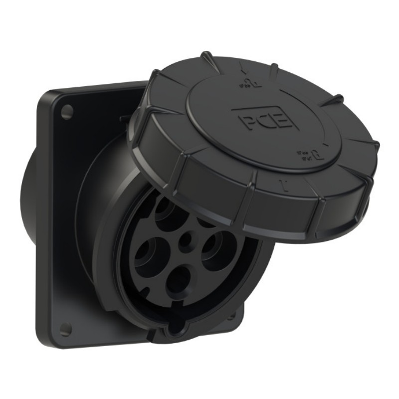 CEE-flanged socket sloping (120x130) 125A 5p 6h IP67 POWER TWIST black