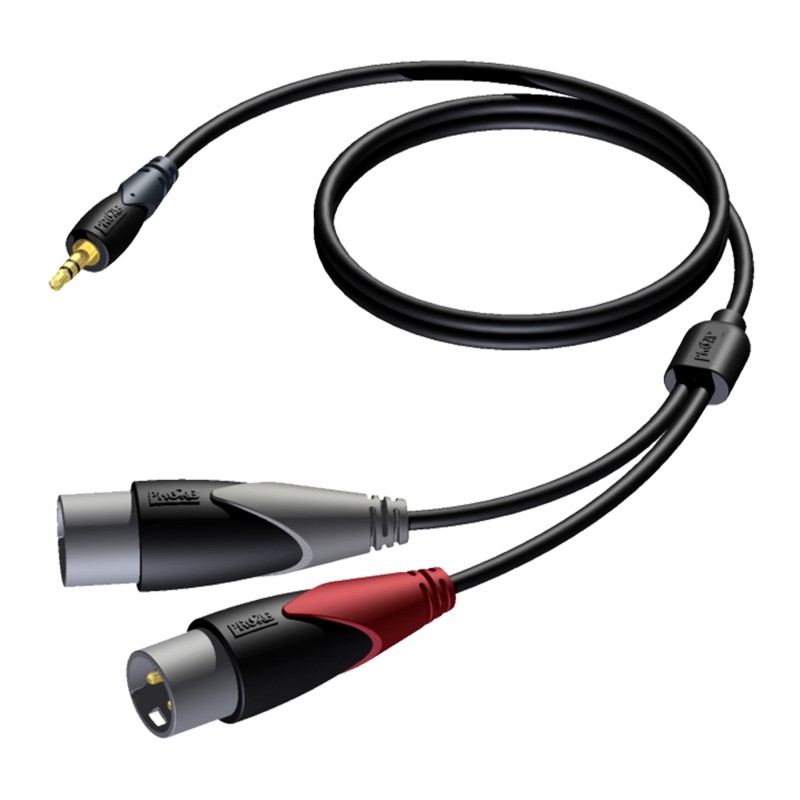 Procab CLA712/1.5 Male Stereo Jack 3,5mm to 2 x Male XLR Cable 1,5m - Black