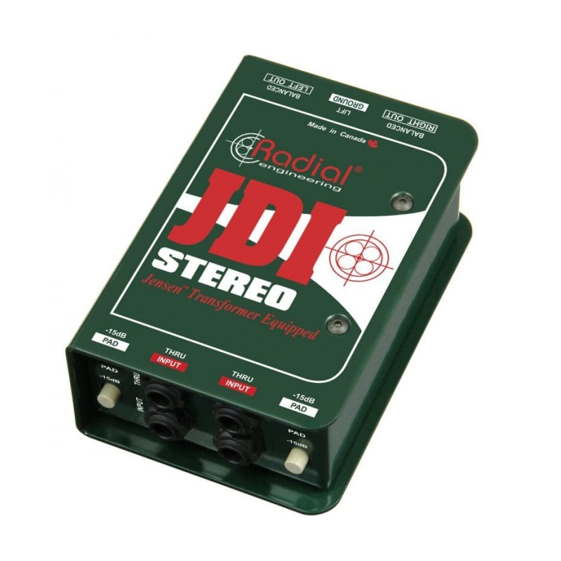 The Radial JDI Stereo is a passive two-channel direct box designed to handle extreme signal levels without distortion of any kind. It employs two world-class Jensen JT-DB-EPC audio transformers to deliver a smooth, warm sounding Bessel curve, reminiscent of the finest vintage gear. Ruler flat from 10Hz to 40kHz and with virtually zero phase deviation, the JDI Stereo delivers the natural, pure sound of the instrument without artifact. By its no-power passive design, the JDI Stereo performs both high-to-low impedance conversion and signal balancing over a magnetic bridge that passes signal while rejecting stray DC voltage. This makes it particularly adept at eliminating hum and buzz caused by ground loops.