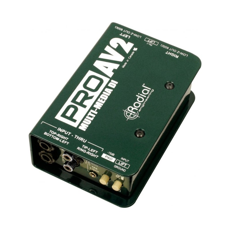 The ProAV2 is a stereo passive direct box designed for audio-video integrators and technicians, with an array of input connector options to easily interface with a wide range of audio equipment.