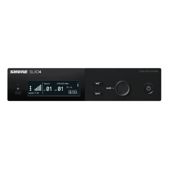 SLX-D® Digital Wireless delivers transparent, 24-bit digital audio and rock solid RF performance with easy setup and rechargeability options in a suite of versatile wireless system configurations. Featuring industry-leading digital wireless technology and design, the SLXD4 easily syncs wireless transmitters. A variety of interchangeable microphone choices guarantees the right solution for a wide range of applications, from day-long presentations to nighttime performances.
