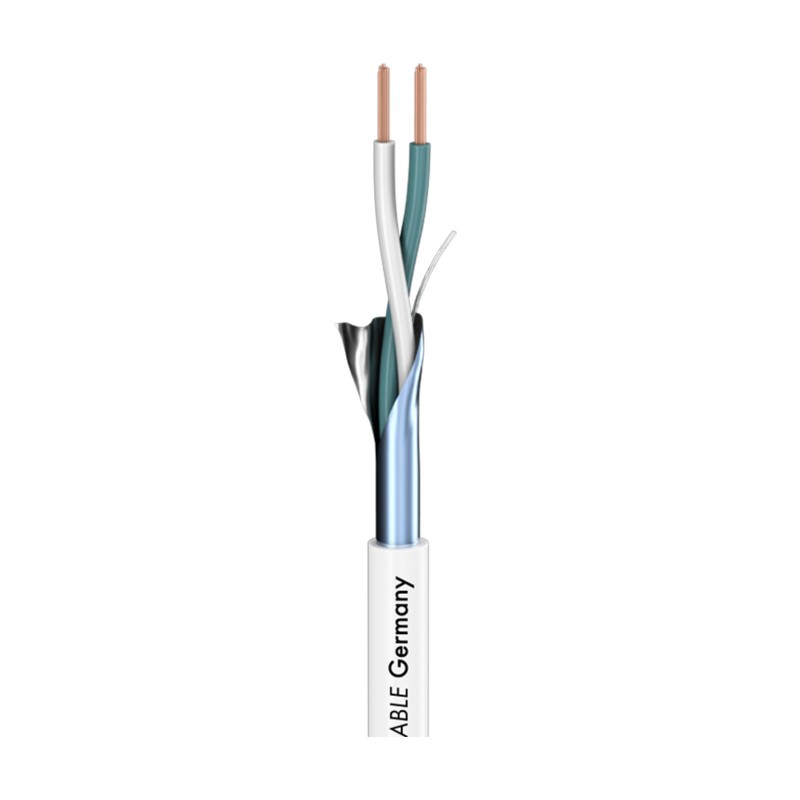 The SC-ISOPOD SO-F22D is a 2-wire, foil-shielded cable with a compact outer diameter of 3,30 mm. The cable is primarily used for the internal wiring in audio and hi-fi components. It has a “memory effect“ and can be laid “around the corner“ easily. The Cu wires of the individual wire pairs are already pre-stranded and very easy to strip. For a simpler assembly, the cable has an additional pre-stranded, tin-plated drain wire. It is shielded by an AL/PT foil that will automatically stick on the jacket when stripping it. The SC-ISOPOD SO-F22D has a surge impedance of 110 Ω.